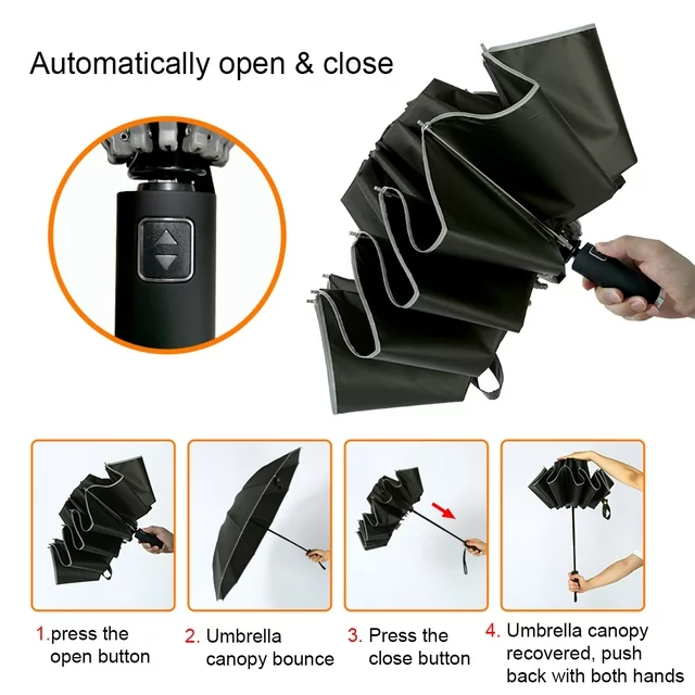 Fully Automatic Umbrella: Our umbrella features a one-touch open and close mechanism, making it incredibly easy to use. Enjoy convenience at your fingertips with our user-friendly umbrella.