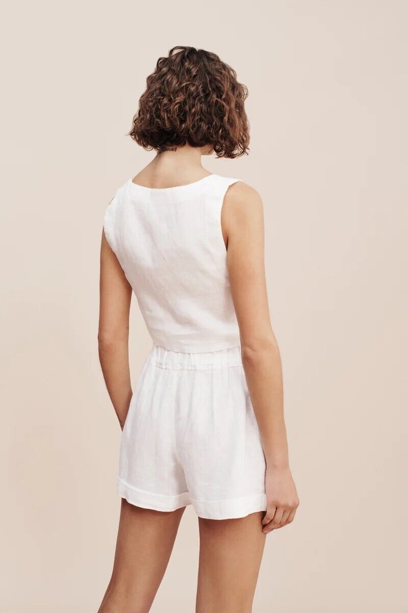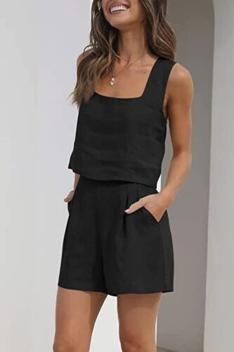 100% Organic Cotton Linen Two Piece outfits Women Linen shorts set crop tank top