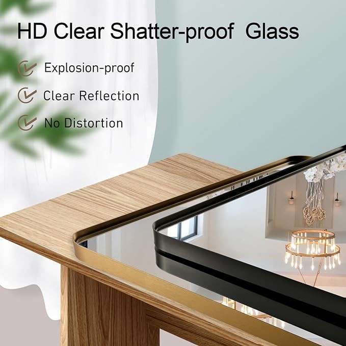 • 【Clear Reflection】Not like the ordinary rectangle bathroom mirrors, our bathroom vanity mirror use advanced reflective coating technology, after more grinding and polishing to ensure the flatness and smoothness of the surface, making the mirror for bathroom reflection effect more clear and bright. Using the 1:1 highly reproduced portrait technology, clear without distortion, restore your true beauty.