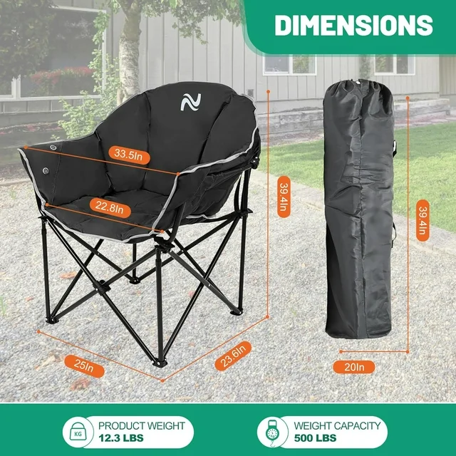 Durable Frame: Made with premium, high-quality materials, this camping chair is built to last. The sturdy steel frame construction can withstand up to 500 pounds of weight. Padded Seat & Back can provide extra comfort while sitting on it.