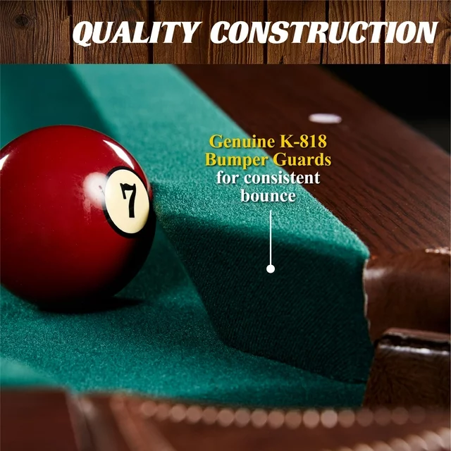 • This billiard table has a sleek polyester felt, which allows for a smooth and consistent ball roll