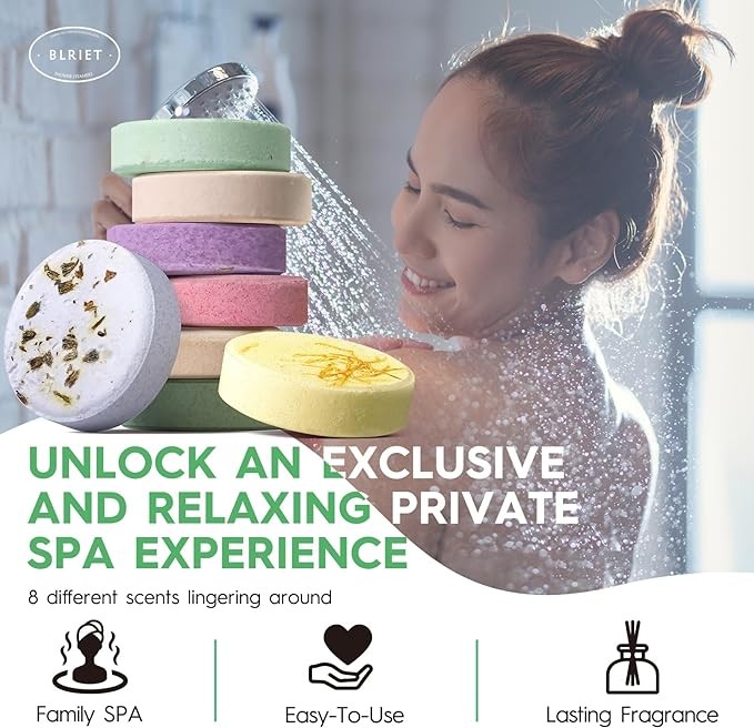 BLRIET Shower Steamers Aromatherapy Spa Gifts for Women 8 Pack, Shower Bombs Birthday Gift for Mom with Lavender Natural Essential Oils, Self Care Gifts for Women & Lover