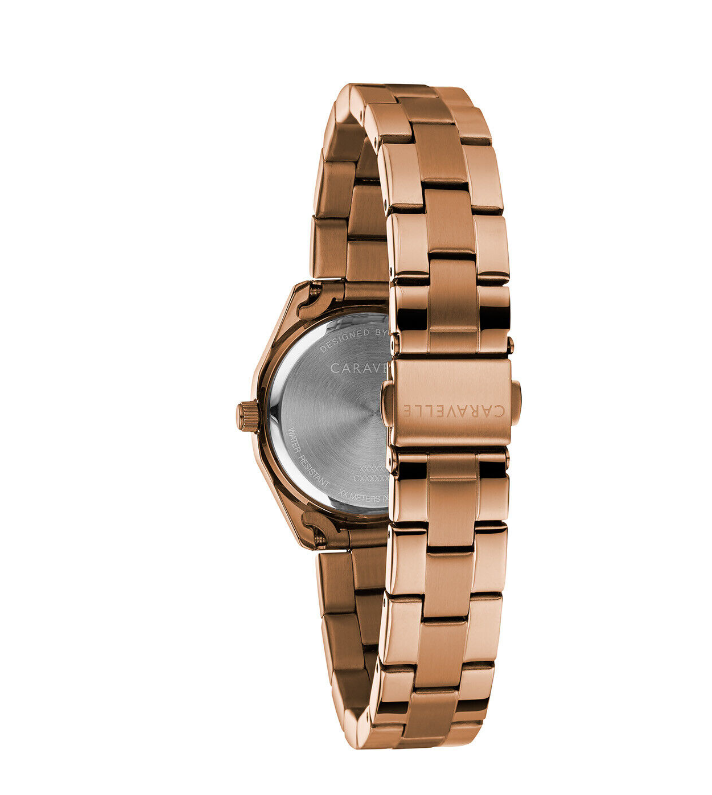Caravelle Women's Quartz Rose Gold Crystals Stainless Steel Watch 28mm 44M114