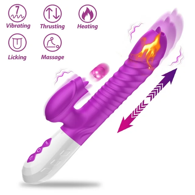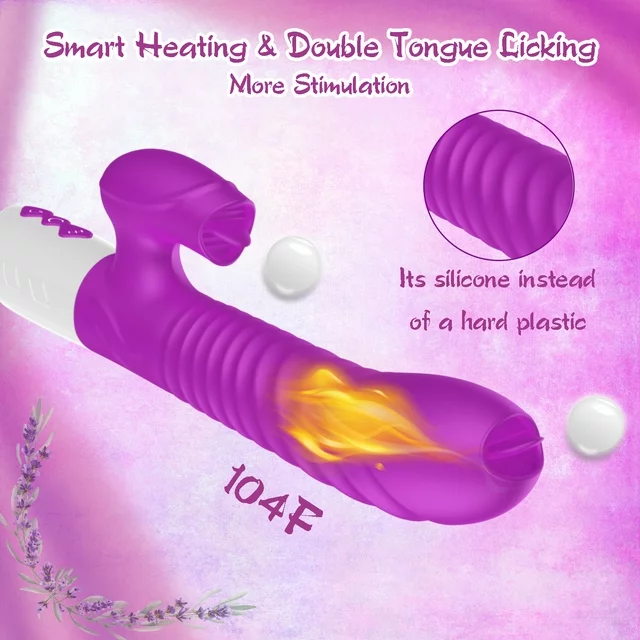 ESVOW Thrusting Rabbit Vibrator for Women, Stimulator Sex Toys with 10 Tongue Licking Vibration & 3 Telescopic Modes & Heating Function,5 IN 1 Waterproof Adult Toy for Couples Pleasure