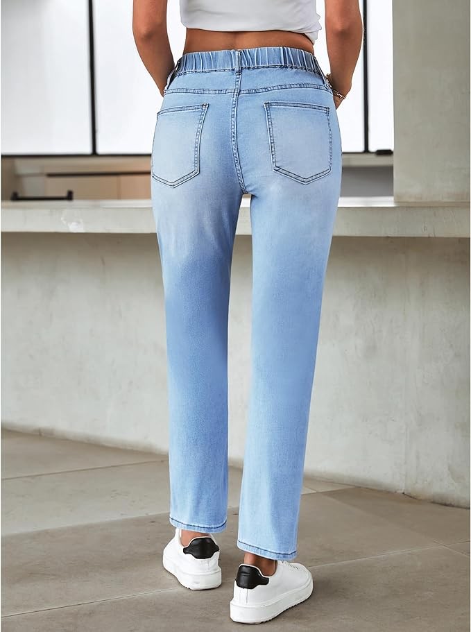 GRAPENT Straight Leg Jeans for Women Trendy Pull On High Waisted Cropped Elastic Waist Stretchy Denim Pants Ankle Jeans