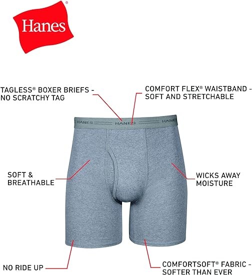 Hanes Men's Boxer Briefs, Soft and Breathable Cotton Underwear with ComfortFlex Waistband, Multipack