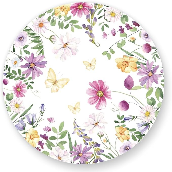 JarThenaAMCS 50 Sheets Butterfly Floral Round Paper Placemat Watercolor Flower Decorative Paper Table Mat for Spring Party Dinner Table, 13 Inch