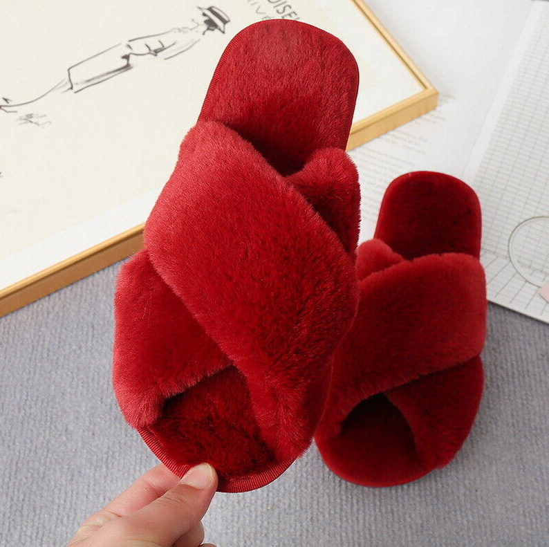 Women Fluffy Slippers Women Cross Band Plush Ladies Slippers for Indoor Outdoor