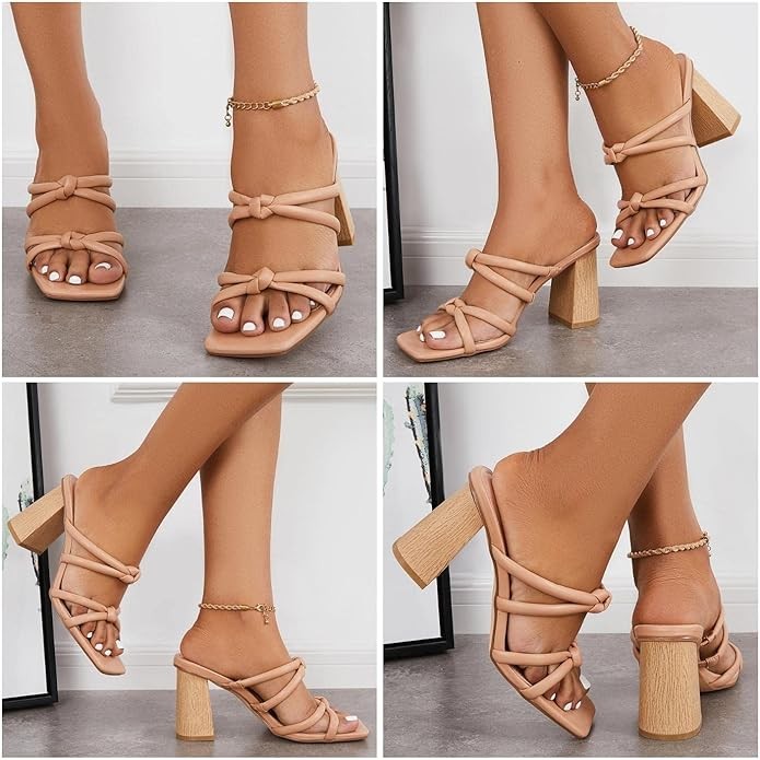• Fashion: The square open toe highlights the toe shape, and the double knot design combines fashion and practical functions to make you stand out at party