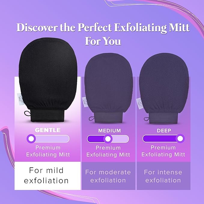 Achieve Softer, Healthier, More Radiant Skin – The Gentle variant of our Premium Exfoliating Mitt helps unclog your pores, visibly remove dead skin, and improve circulation to reveal a rejuvenated complexion. This body buffer also serves as a self tan remover that preps your skin for even application or removal of your sunless tanning solution.