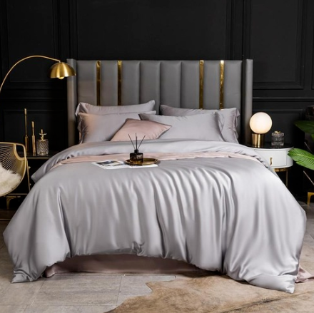 Soft Bedding Set Gray Reversible Duvet Cover Bed Sheet Pillow Silky Soft 4Pcs
