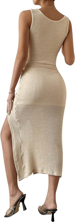 SOLY HUX Women's Sexy Deep V Neck Twist Front Cut Out Drawstring Split Bodycon Dress Sleeveless Midi Dresses