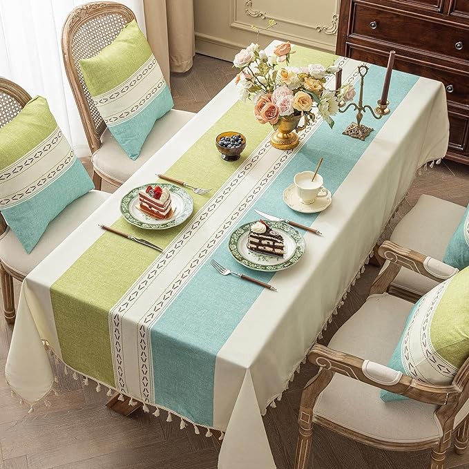 • 【Multipurpose and Occasion】Tablecloths can cover almost most occasions in life. Tablecloth with tassels can be used as indoor tablecloths for the kitchen, dining room, living room, coffee table cover, and banquet. Or outdoor tablecloths for weddings, birthday parties, patios, picnics, buffets, camping, and barbecues. It is a good choice for you to decorate your life.