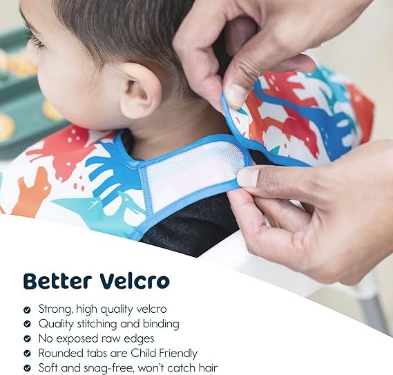 • EASY TO USE: Featuring a tug proof closure that keeps the bib on when you want it and makes removal extra easy, our infant waterproof bibs won't get caught on your little one's hair. Feeding time can be stressful enough without worrying about the mess - our mess-proof kids bibs take the hassle and frustration out of food time!