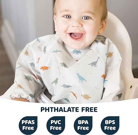 • SAFE SMOCK BIB: Meticulously designed for your child's health, our bib smock is OEKO-TEX Standard 100 Certified. We used fabrics that are free of chemicals & are legally regulated. With Tiny Twinkle toddler bib with sleeves, your babies are in good hands!