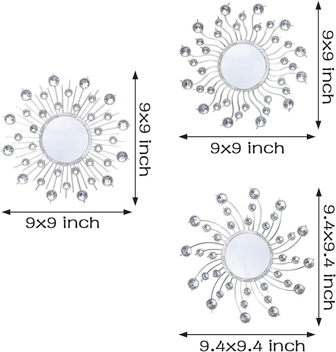 【Mirror on the wall】The silver mirror wall decoration consists of three different sun shapes, The beautiful combination of mirrors can be hung in the living room, bedroom, dining room, hallway entrance, bathroom passage, making your wall bright and unique.